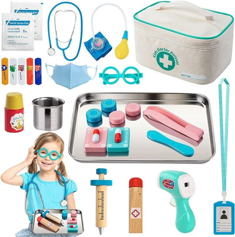 Rol yapma oyunu doktor eğitici oyuncaklar, çocukların farklı ihtiyaçlarını karşılayabilir, çocukların oyun sürecinde daha fazla bilgi ve bilgi edinmelerine izin verebilir ve ayrıca çocukların uygulamalı yetenek ve koordinasyon yeteneğini kullanabilir. Tıbbi kutunun içindeki küçük tıbbi nesnelerin hepsi çok simüle edilmiş ve çok canlıdır, örneğin vücuda küçük bir stetoskop basıldığında kalp atışı gibi bir ses çıkaracak; küçük hap da açılabilir; şırınga, enjeksiyon ve ilaç itme sürecini simüle etmek için yukarı ve aşağı itebilen bir yay tasarımına sahiptir; ayrıca bir damlalık ve bir damlalık rafı, diş okumak için küçük bir alet, bir görüş tablosu ve öğrenme ve açıklama için çok pratik olan küçük bir kart.